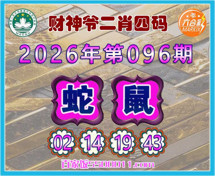 096期:【财神爷】 👛二肖四码👛【蛇】【02.14.19.43】开:鼠43