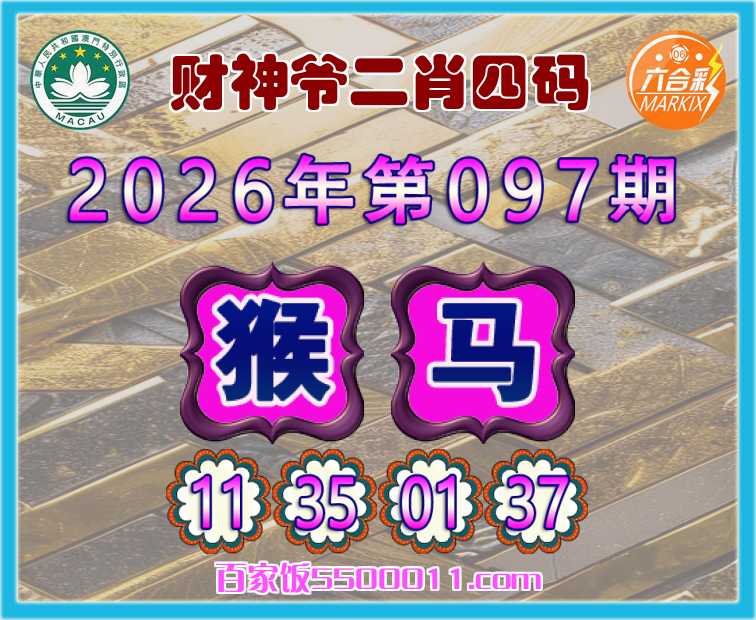 097期:【财神爷】 👛二肖四码👛【马】【11.35.01.37】开:猴11