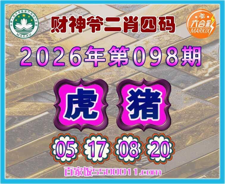 098期:【财神爷】 👛二肖四码👛【猪】【05.17.08.20】开:虎17