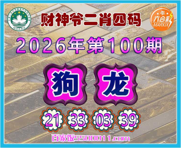 100期:【财神爷】 👛二肖四码👛【龙】【21.33.03.39】开:狗33