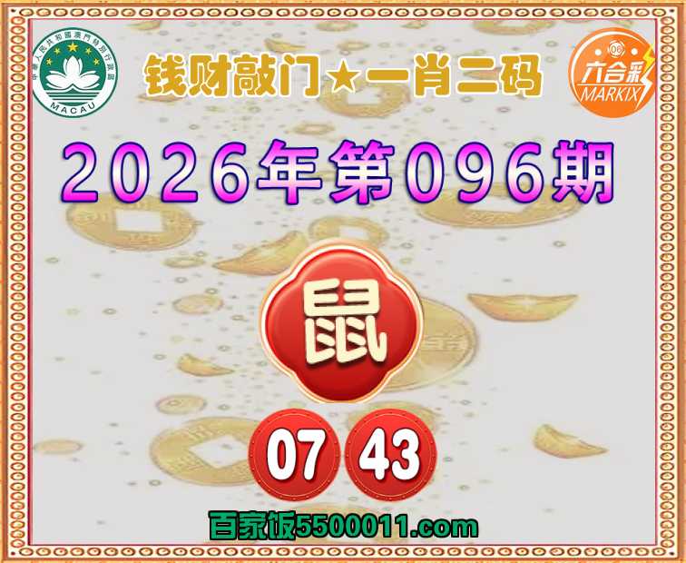 096期:『钱财敲门★』 👑一肖二码👑【】【07.43】开:鼠43