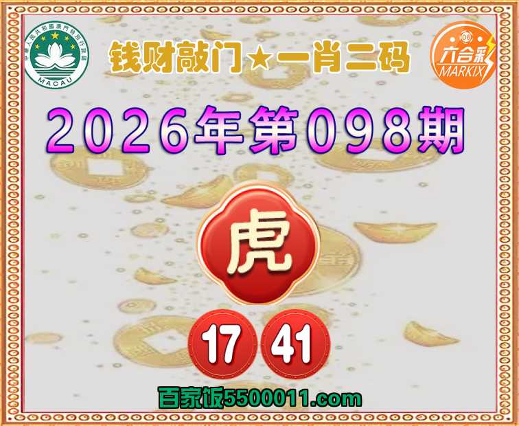 098期:『钱财敲门★』 👑一肖二码👑【】【17.41】开:虎17