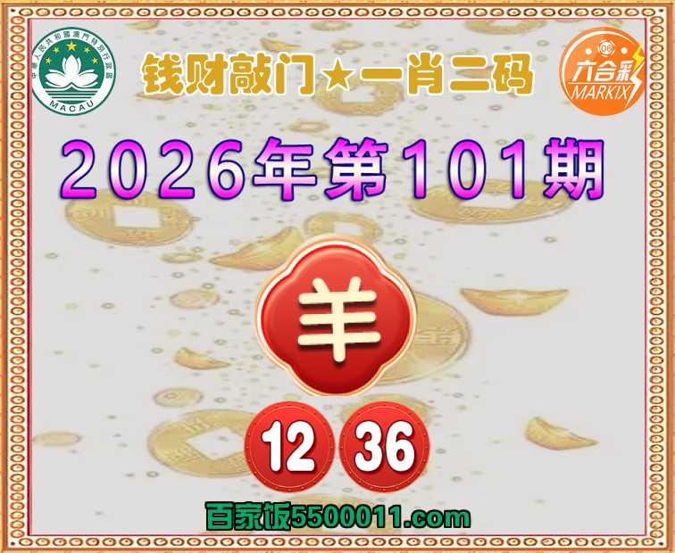 101期:『钱财敲门★』 👑一肖二码👑【羊】【12.36】开:00准